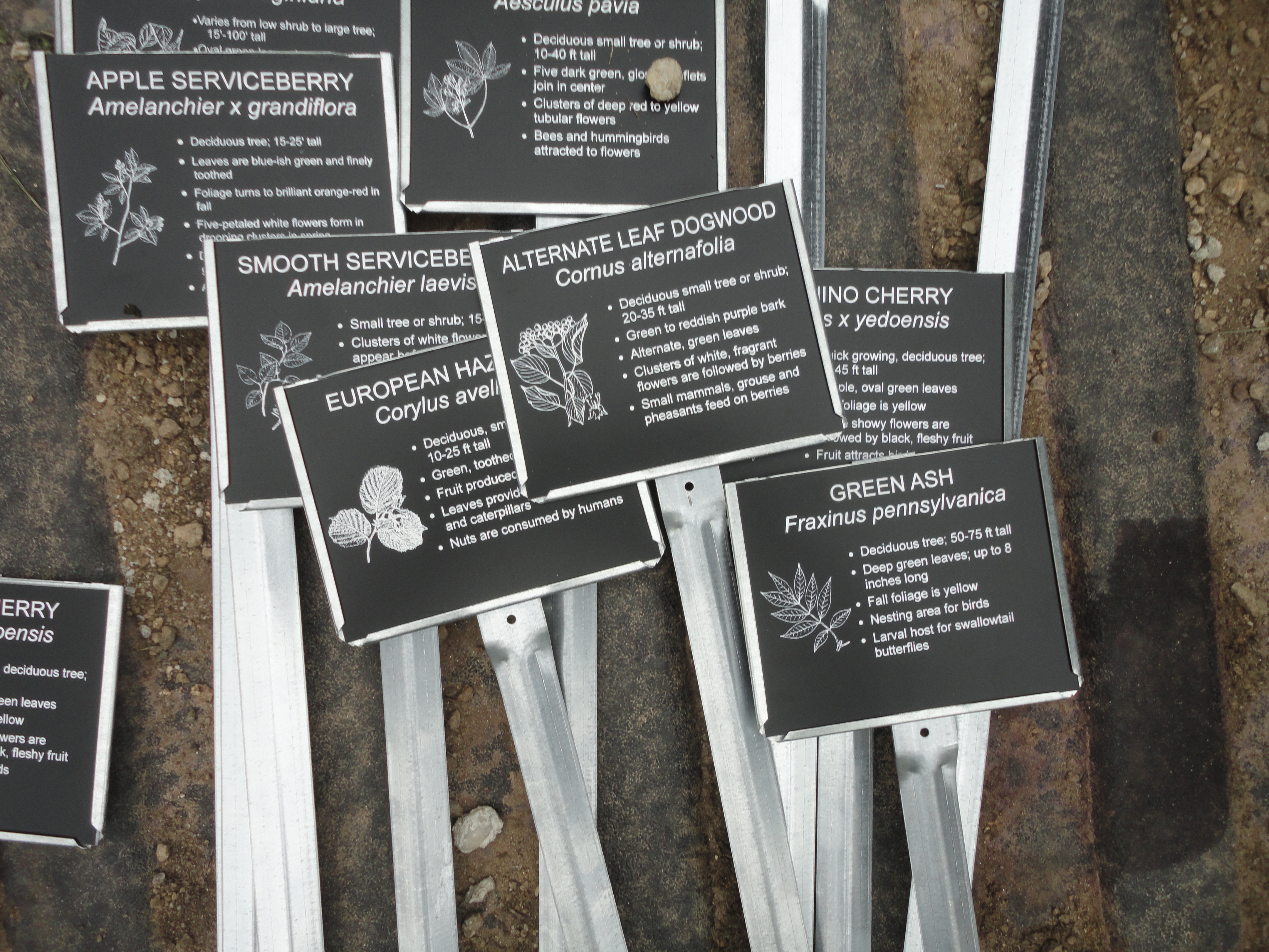 Each label provides both the scientific Latin and the common name along with some important details. The intended message is that all trees are not alike and there are recognizable details that distinguish one from another. When you know the identity of a tree, you can also learn where it is best planted, and what practical uses it has. We hope these plaques will stimulate interest in trees and, if well received, we will expand to other locations. The general locations for these plaques were based upon the accessibility and popularity of these sites for the public.